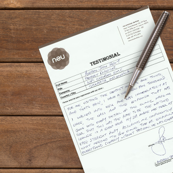 For me visiting the dentist means one thing, and that pain! I have a very low pain threshold. I walked into neu and was immediately at ease, the class and the expense that has gone into every detail of the clinic made me feel that this as the place to be. The waiting lounge is a good idea. My dr made me feel at ease straight away, assurance me coufidently what needed to be done. The dr explaned everything clearly without jargon, he was great. 10/10!