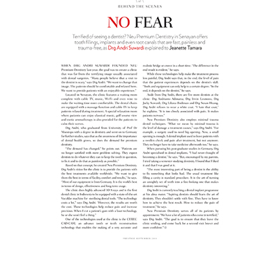 Terrified of seeing a dentist? Neu Premium Dentistry in Senayan offers tooth fillings, implants and even root canals that are fast, painless and trauma-free, as Drg Andri Suwardi explained to Jeanette Tamara When Drg Andri Suwardi founded neu Premium Dentistry last ... Read More