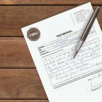 For me visiting the dentist means one thing, and that pain! I have a very low pain threshold. I walked into neu and was immediately at ease, the class and the expense that has gone into every detail of the clinic made me feel that this as the place to be. The waiting lounge is a good idea. My dr made me feel at ease straight away, assurance me coufidently what needed to be done. The dr explaned everything clearly without jargon, he was great. 10/10!