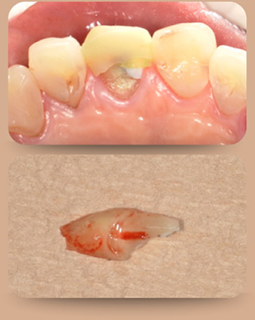 • Instead of removing the whole tooth, part of the root was kept to support the bone and gums.